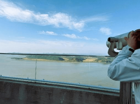 **韓國唯一一家可以眺望北韓的咖啡廳,和對岸的直線距離僅有一千米左右,店內還設有觀景平台和望眼鏡。